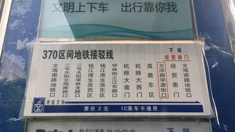 | 下沙公交自己放置的「370区间地铁接驳线」站牌。Ref: http://bbs.hangzhou.com.cn/forum.php?mod=viewthread&tid=22874686 |
