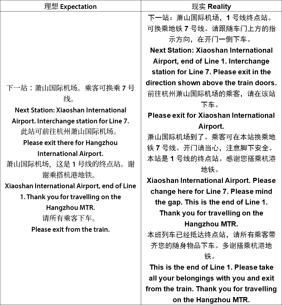下一站:蒋村。本次列车终点站:蒋村。前往金星方向的乘客,请在该站换乘。左侧车门将会打开。